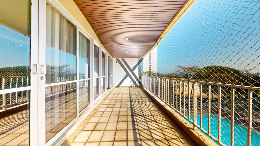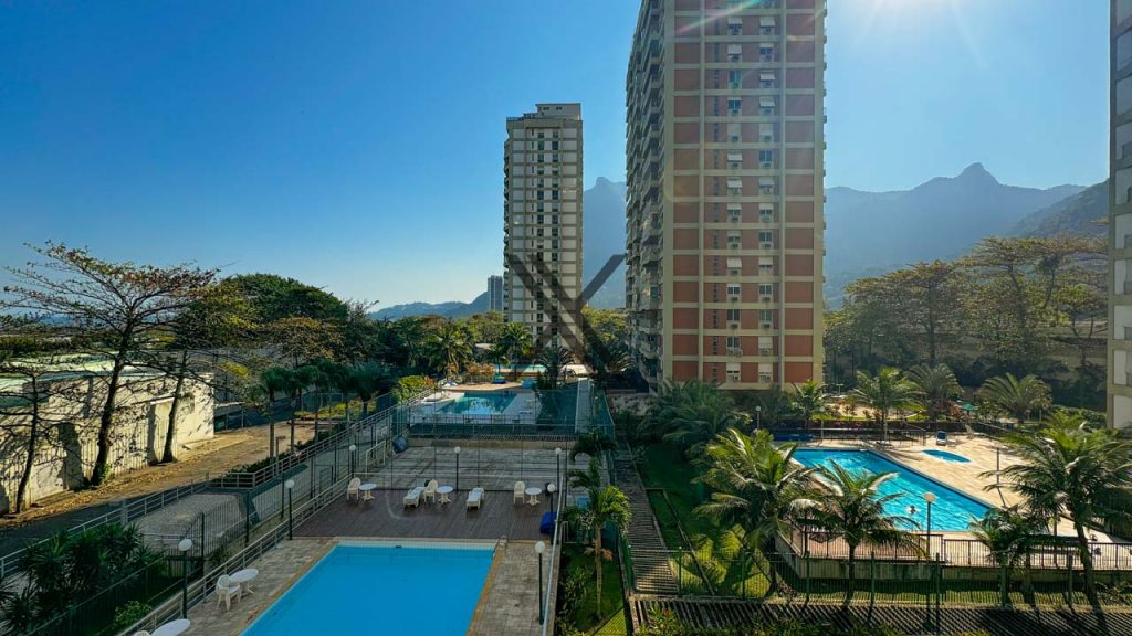 Apartamento de 146 m², com planta circular e vista para a Pedra da Gávea e para a área de lazer do condomínio, no São Conrado Green. O imóvel está localizado perto do shopping Fashion Mall e a menos de 1 minuto a pé da Praia de São Conrado.