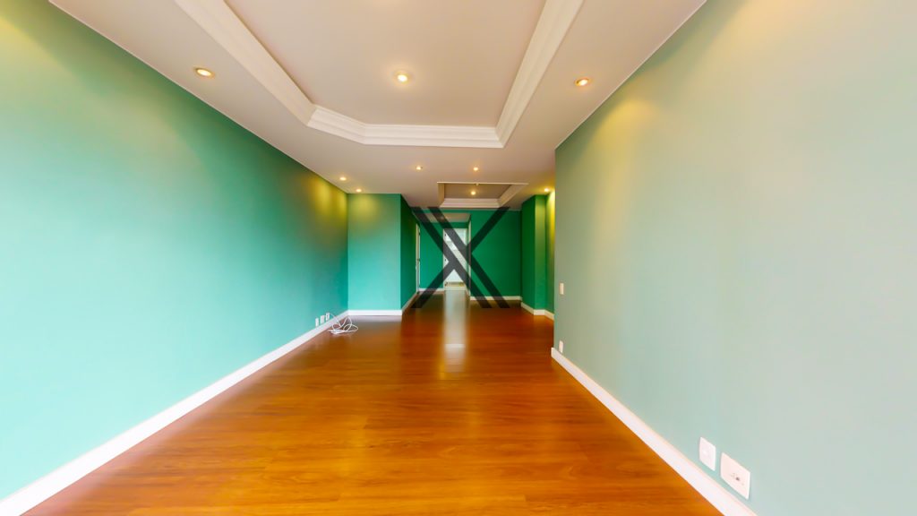 A área social é composta por uma ampla sala em 2 ambientes, com projeto luminotécnico e excelente varanda com vista interna. A área também possui um lavabo de apoio às visitas. O imóvel conta com ares-condicionados em todos os cômodos e iluminação e ventilação naturais abundantes.