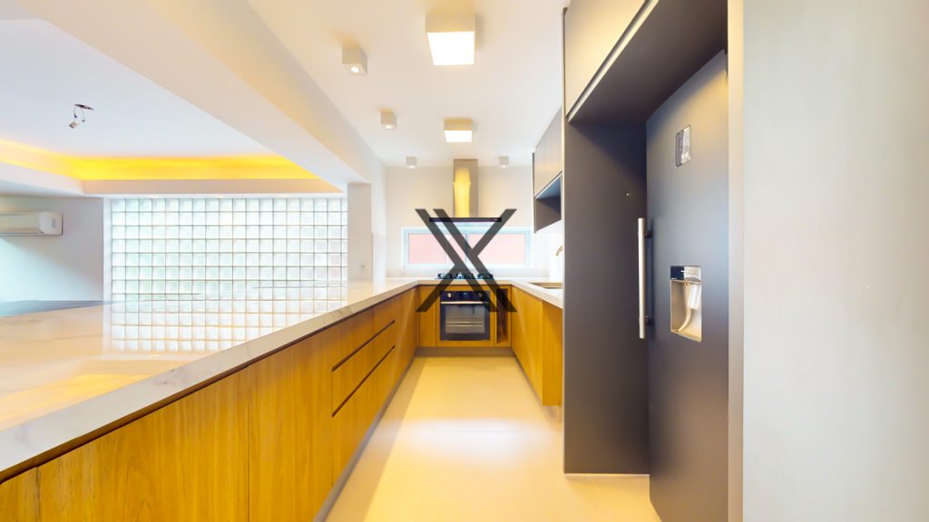 O segundo pavimento, onde está o acesso principal da casa, abriga uma enorme sala em 3 ambientes, que inclui um hall de entrada, sala de estar e uma bela sala de jantar. O ambiente também conta com uma linda cozinha integrada, com armários novos, um lavabo, uma lavanderia novíssima e uma dependência completa para funcionários.