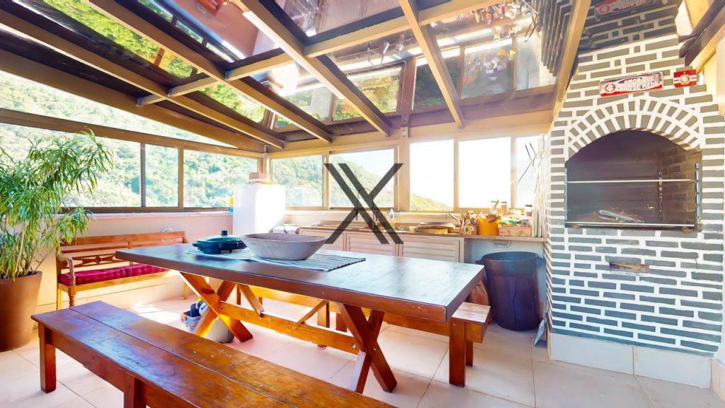 A área social possui uma sala composta por 3 ambientes distintos, além de acesso à área externa, que conta com grande terraço com piscina e um salão gourmet com churrasqueira, totalmente fechado com vidro.