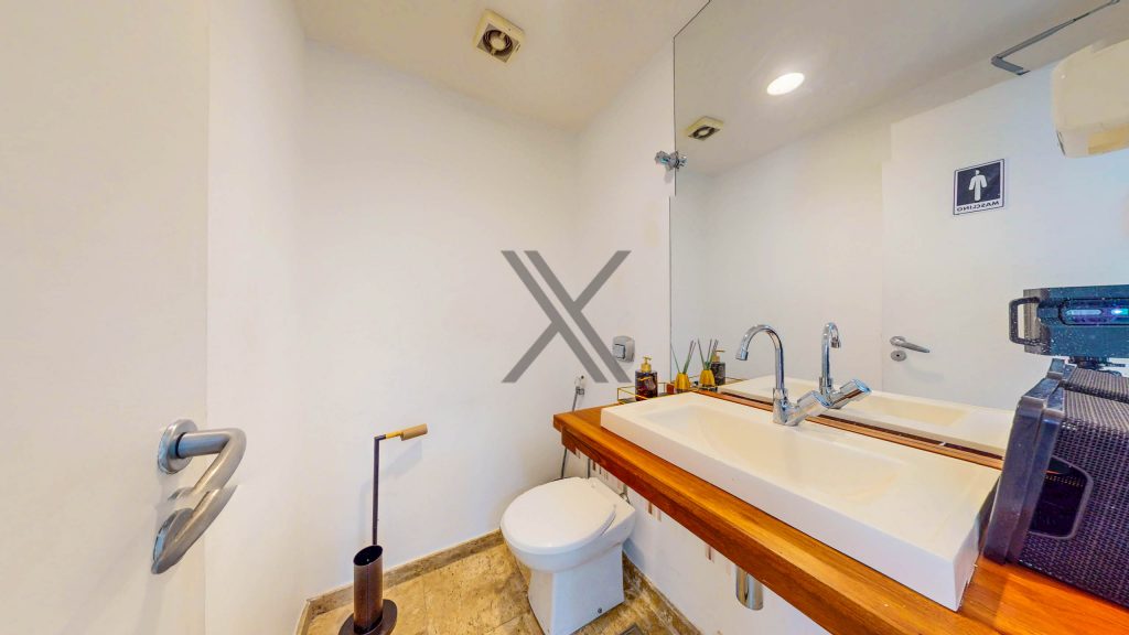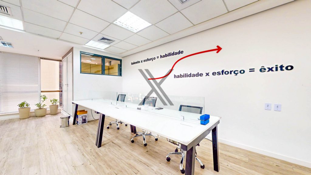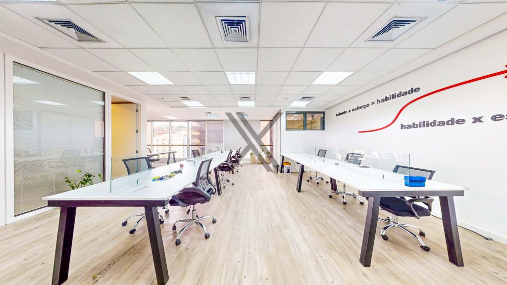 Na entrada, temos a primeira sala de reunião com espaço para até 4 pessoas. Na sequência, vemos um grande salão que pode ser utilizado em diversos formatos, além de uma segunda sala de reunião, a qual comporta mesa para 6 pessoas com muito conforto. Por fim, o imóvel apresenta 2 banheiros e uma excelente copa, com armários e uma despensa.