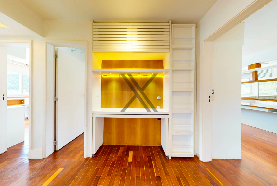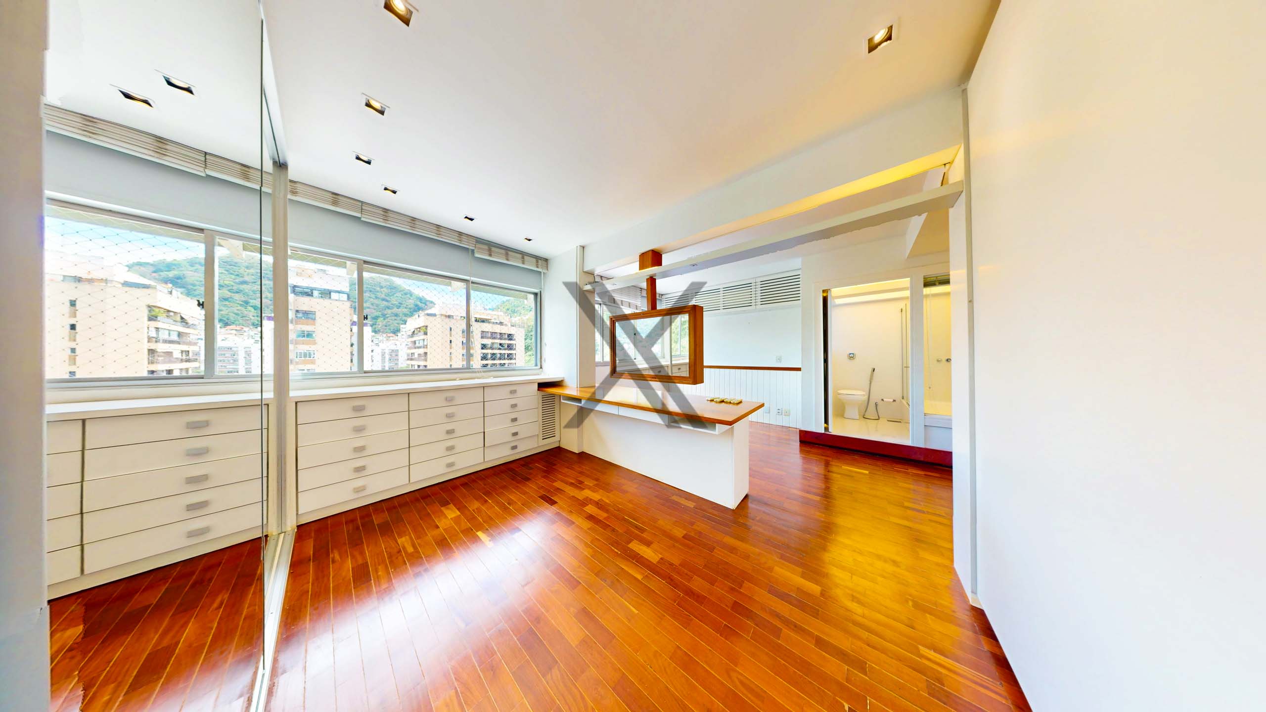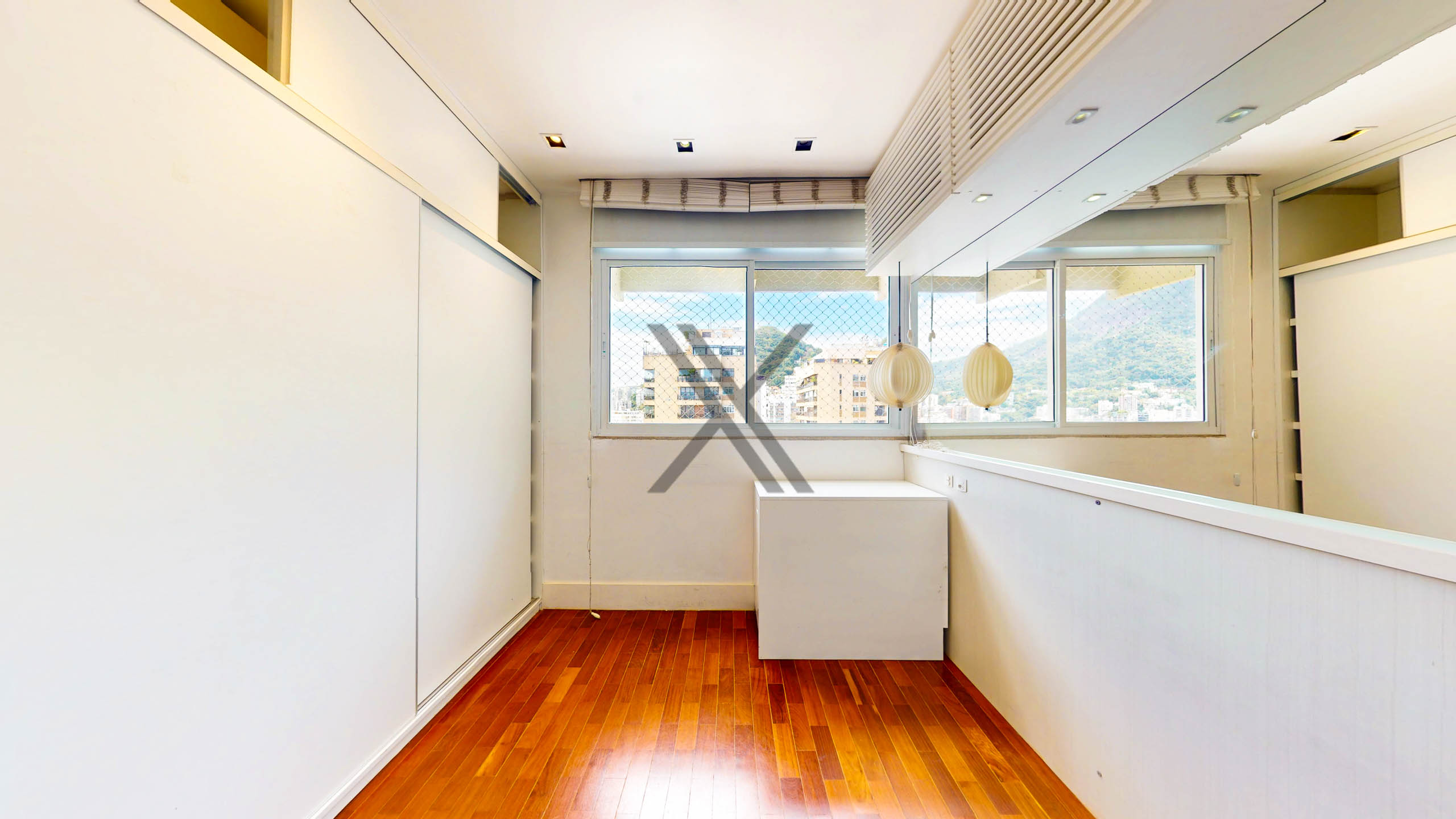 Apartamento de 138 m², localizado na Lagoa Rodrigo de Freitas, perto da Fonte da Saudade. A região é de fácil acesso à Zona Sul e ao Centro do Rio de Janeiro, com muitas escolas, hospitais e farto comércio. Por estar em andar alto, o apartamento oferece vista privilegiada para a Lagoa e Cristo Redentor.