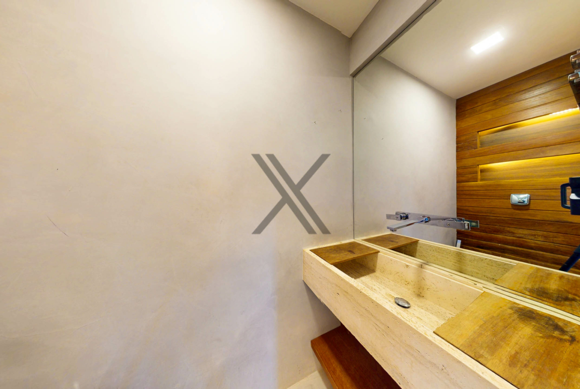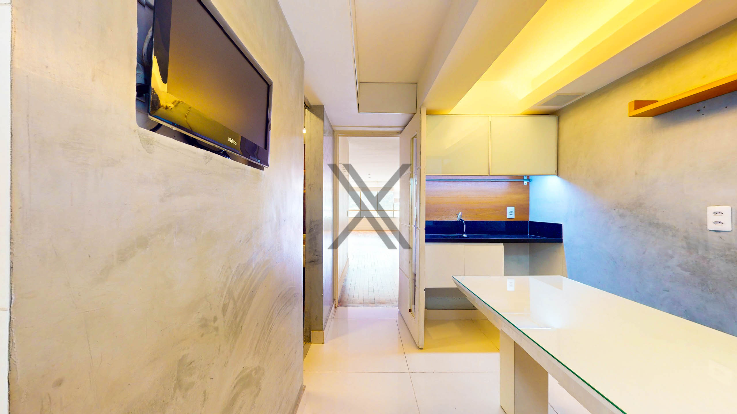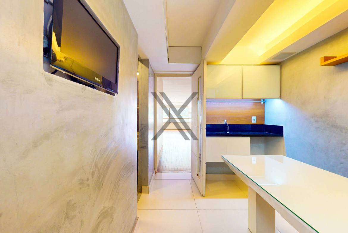 A área social apresenta uma ótima sala em 2 ambientes, com projeto luminotécnico e de marcenaria. As amplas janelas garantem bastante luz natural e vista livre para a Lagoa e Cristo Redentor. Uma bela porta de correr em madeira separa as áreas social e privativa. Um lavabo de apoio complementa o ambiente.