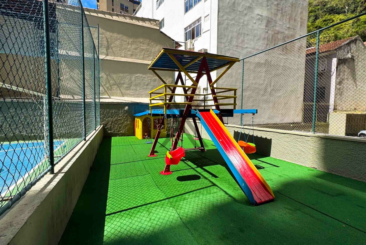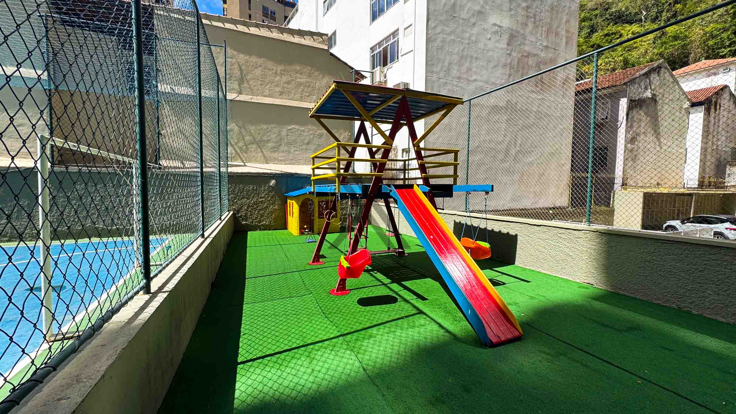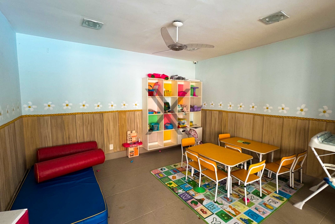 O condomínio oferece portaria 24 horas com boa apresentação, controle de acessos, circuito de câmeras e segurança perimetral. Na área de lazer, é possível usufruir de brinquedoteca, quadra poliesportiva, academia, salão de festas e playground.