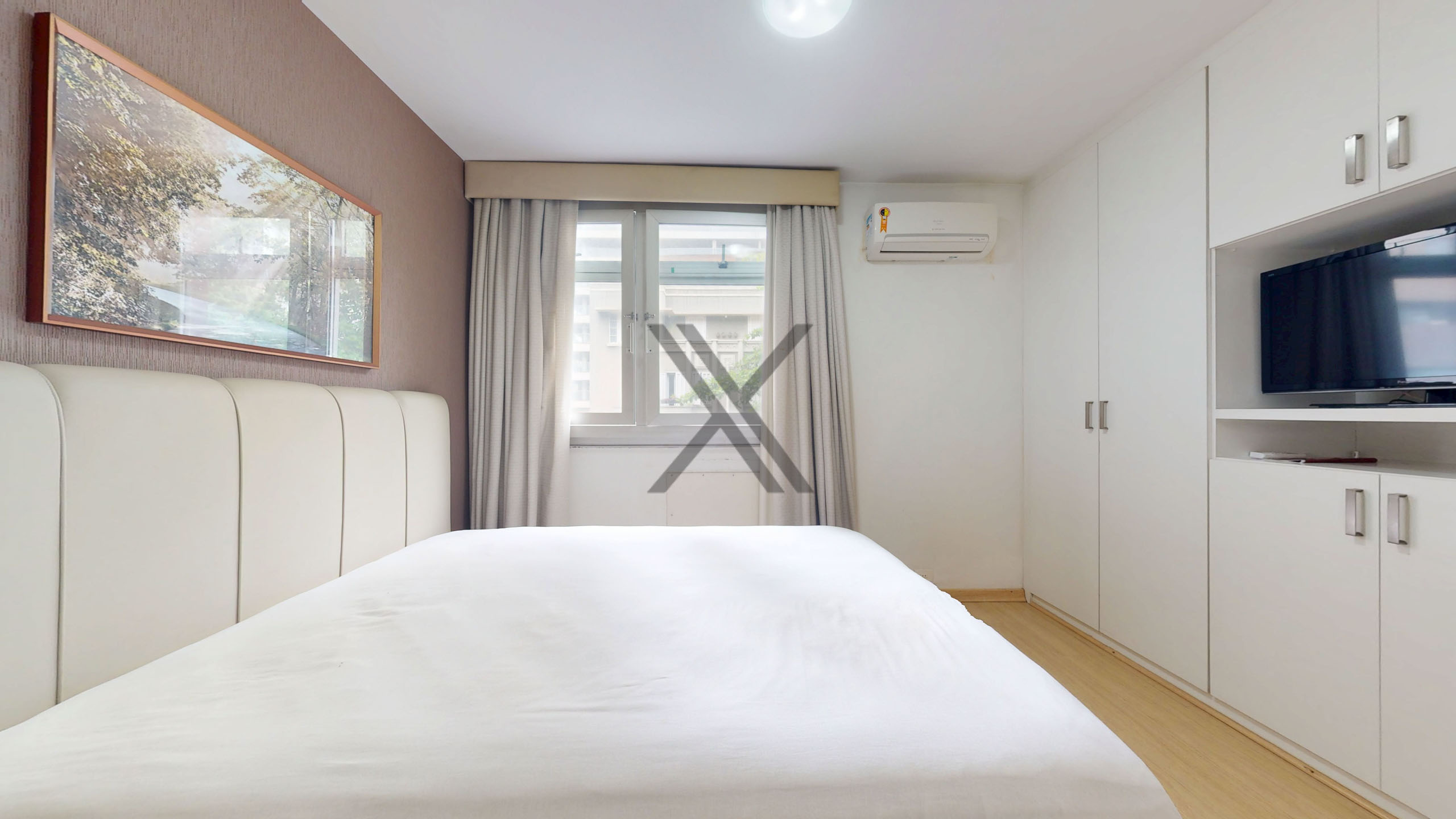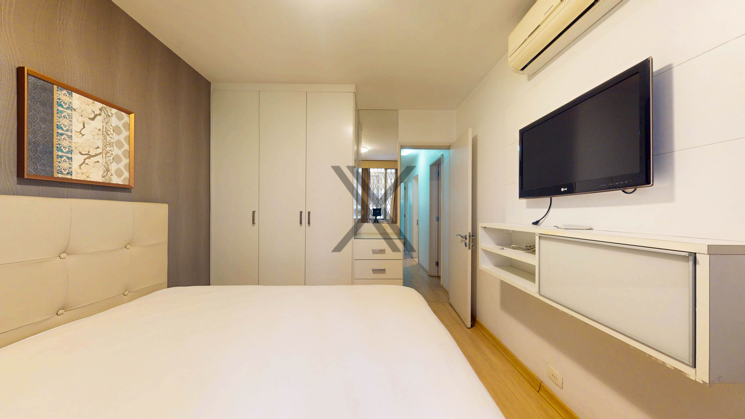 A área íntima é composta por 3 quartos, sendo 1 suíte, todos com ótimas dimensões e ar-condicionado split instalado, além de um banheiro social de apoio.