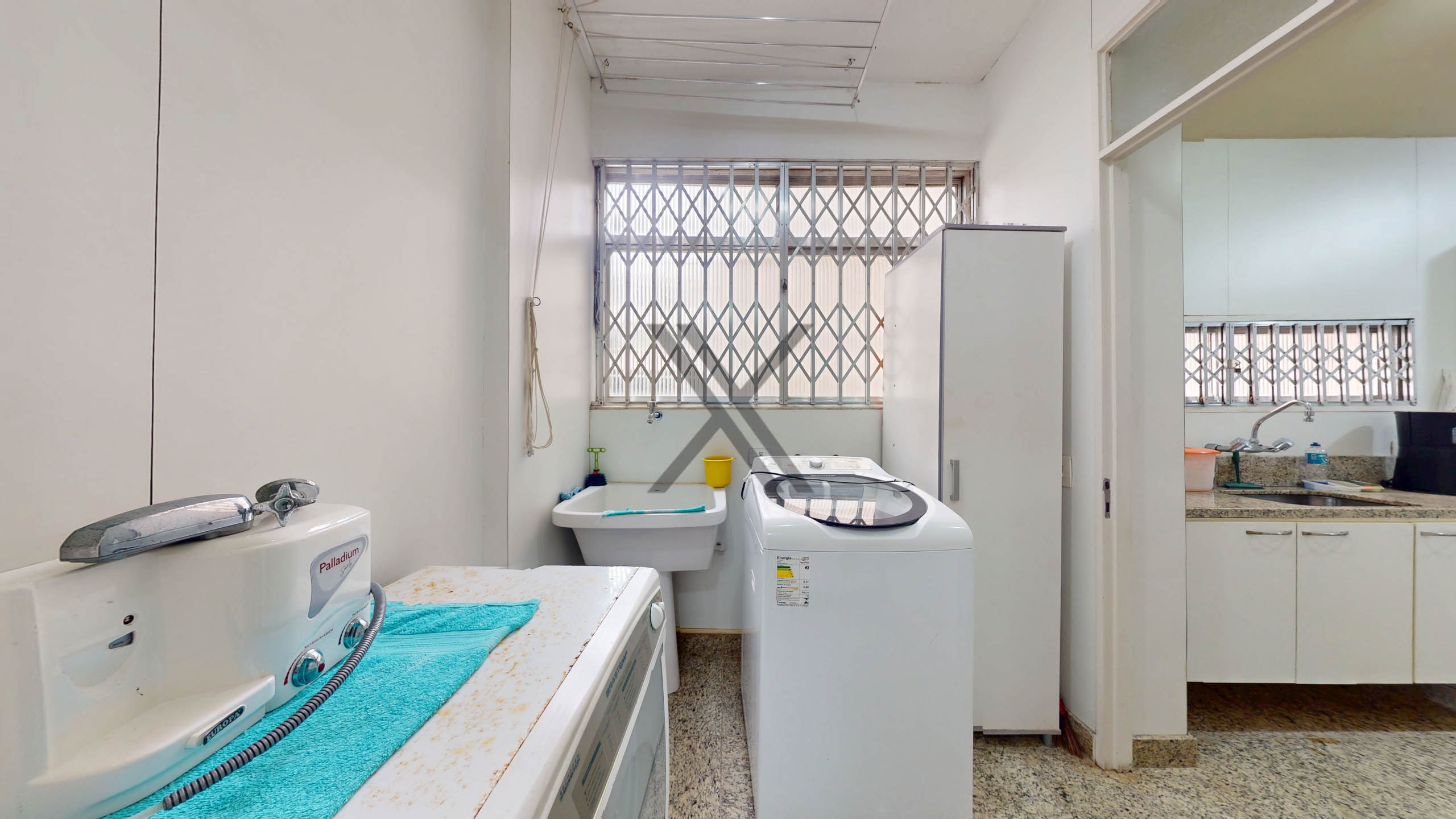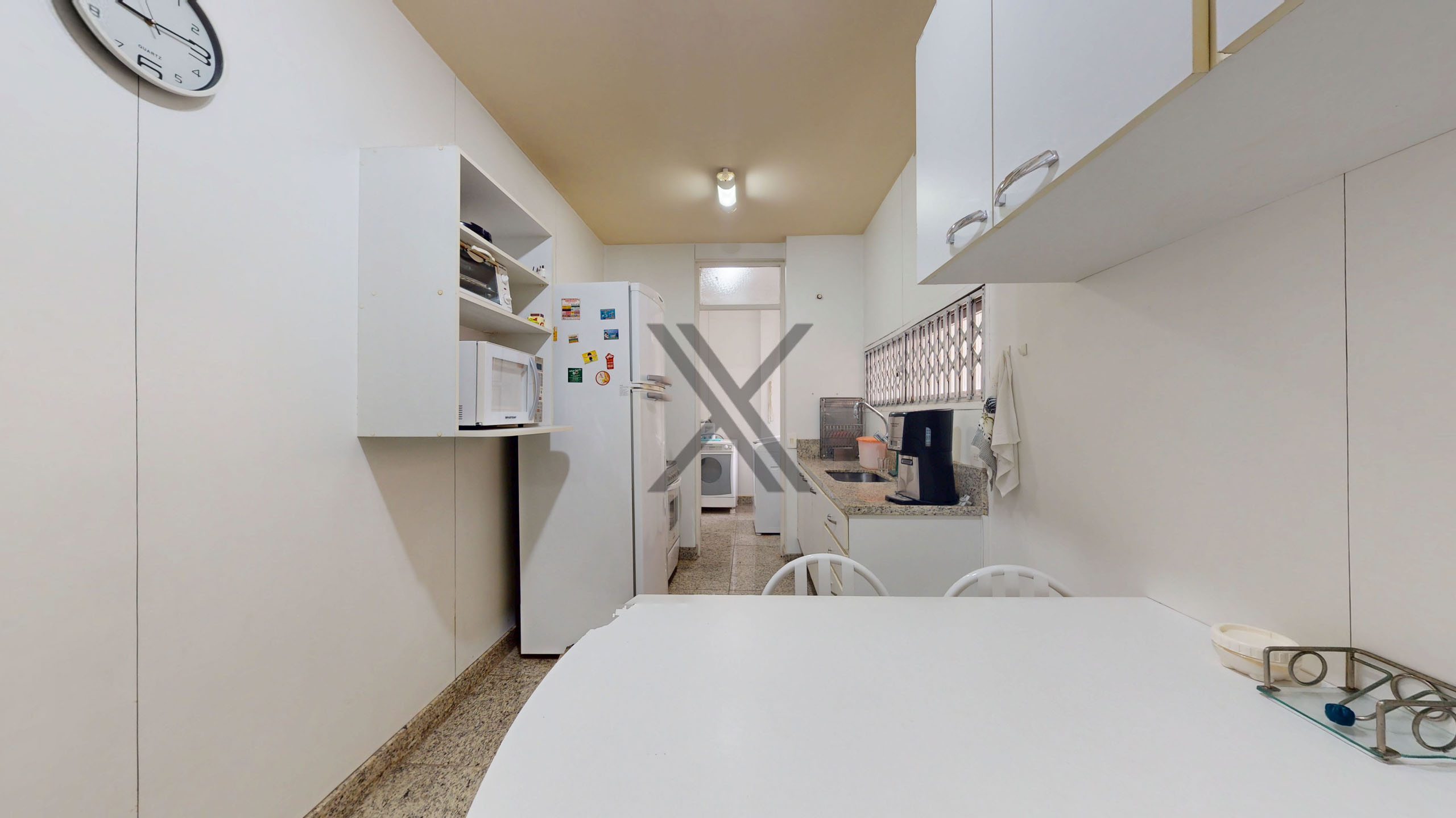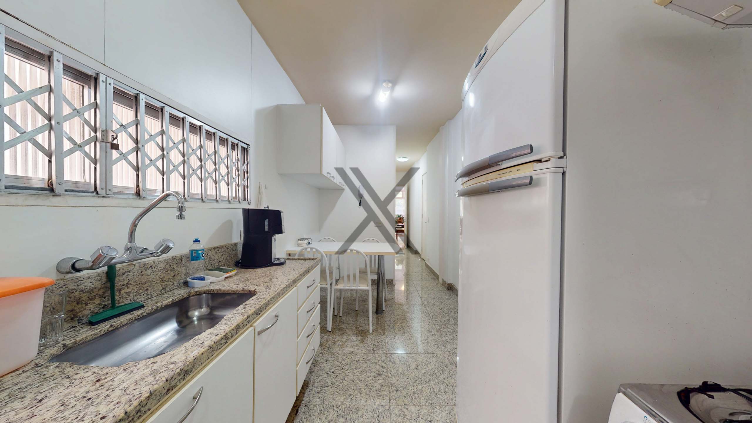 A cozinha é funcional, equipada com armários, bancadas para apoio e organização, além de uma mesa para pequenas refeições. Em anexo, encontram-se a área de serviço e dependência completa para funcionários.