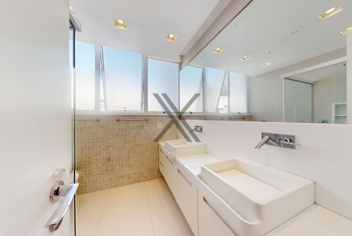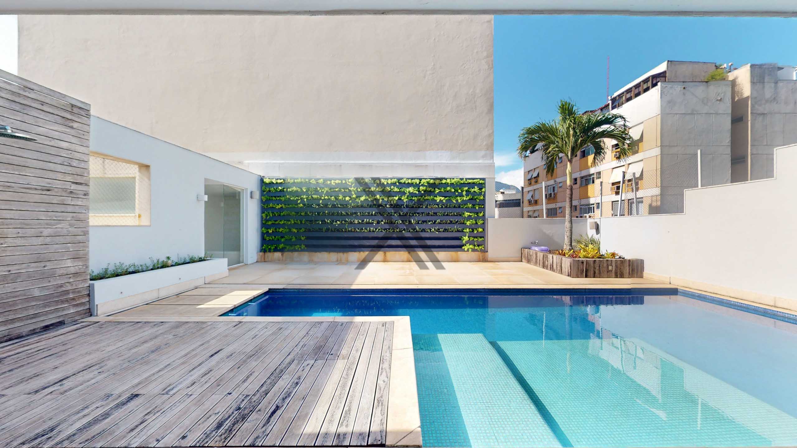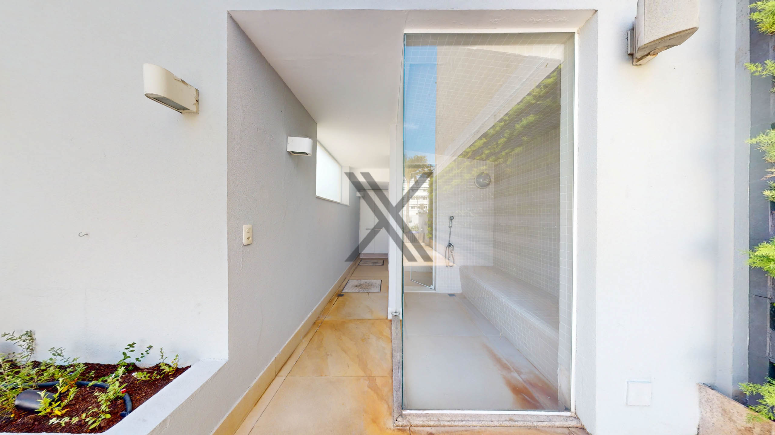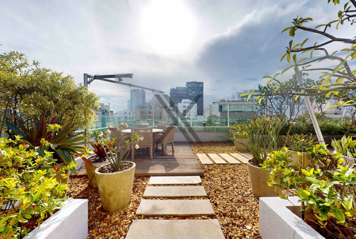 No segundo pavimento temos a área de lazer do imóvel, com sala de TV, piscina com chuveirão, espaço gourmet com churrasqueira, sauna e banheiro completo. Um lindo jardim privativo com vista para a praia do Leblon e para o Morro Dois Irmãos coroam esse belo espaço.