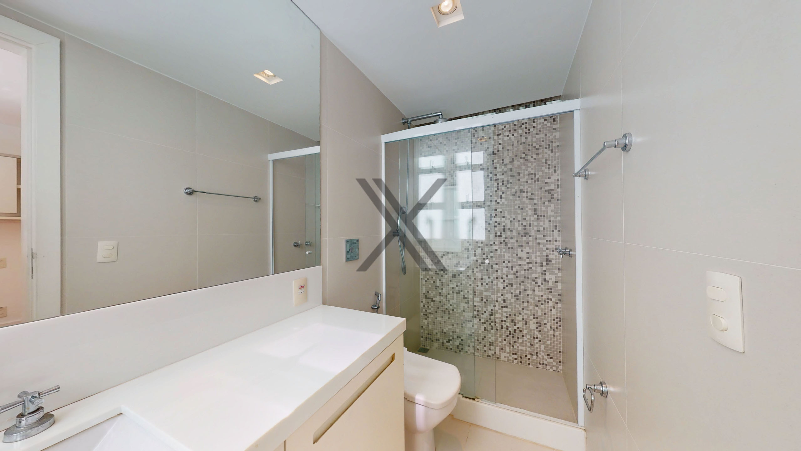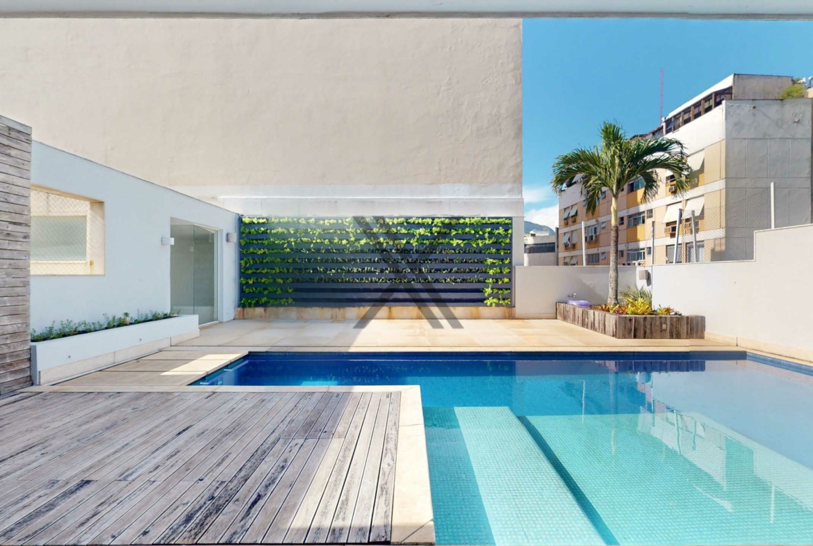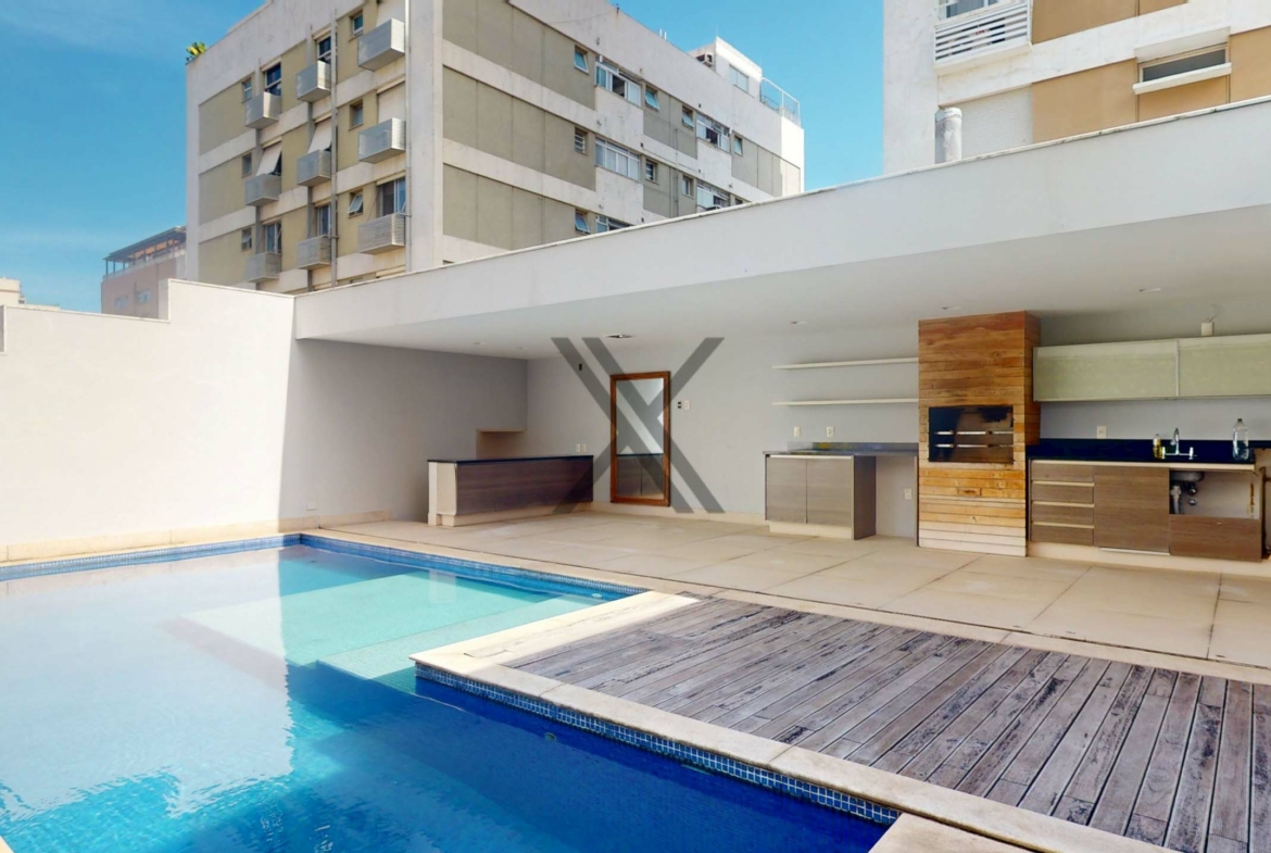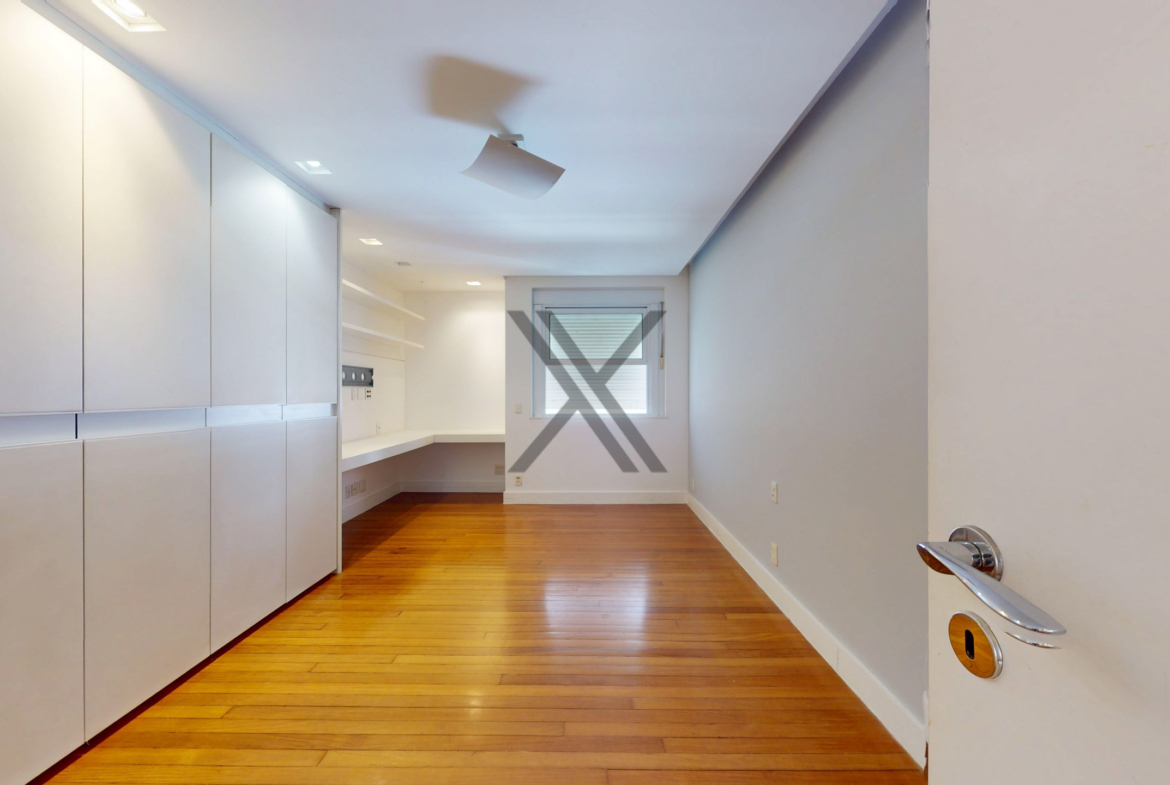 No segundo pavimento temos a área de lazer do imóvel, com sala de TV, piscina com chuveirão, espaço gourmet com churrasqueira, sauna e banheiro completo. Um lindo jardim privativo com vista para a praia do Leblon e para o Morro Dois Irmãos coroam esse belo espaço.