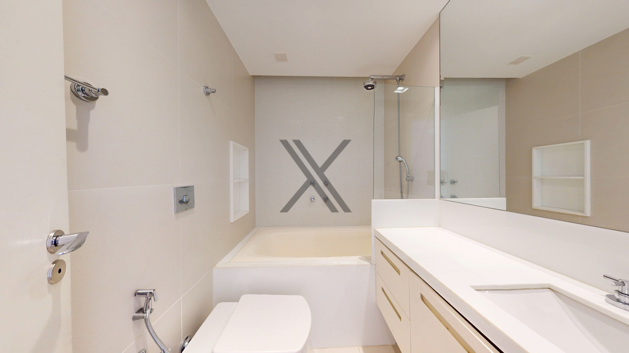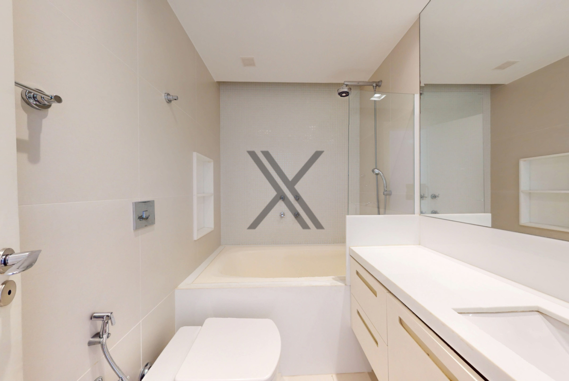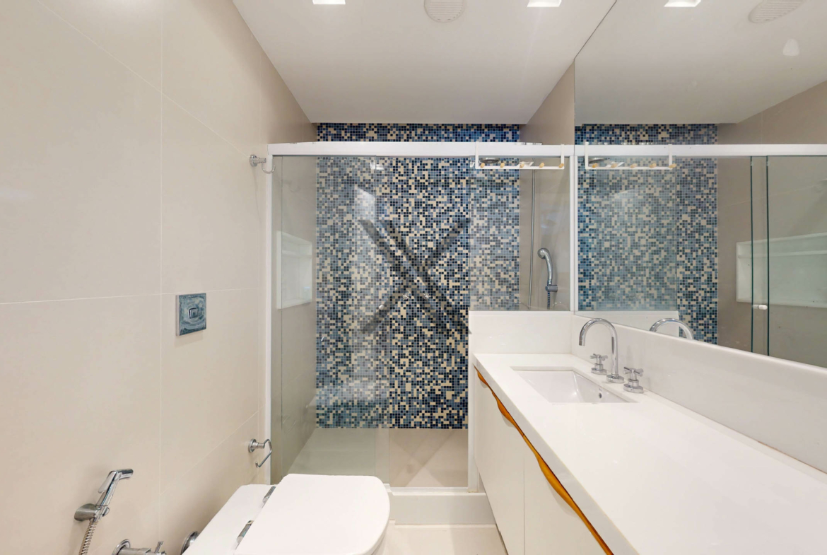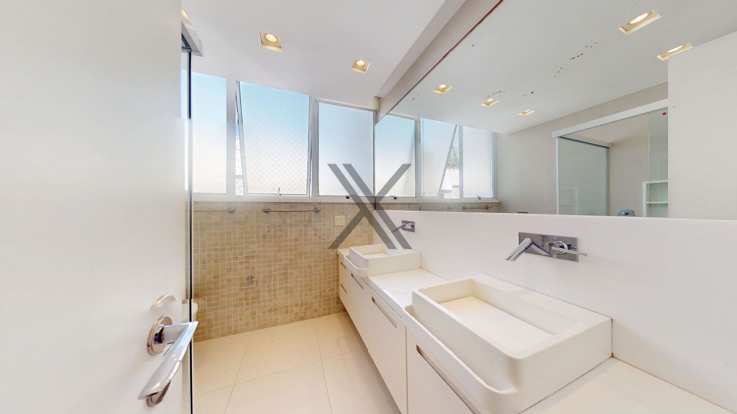 No segundo pavimento temos a área de lazer do imóvel, com sala de TV, piscina com chuveirão, espaço gourmet com churrasqueira, sauna e banheiro completo. Um lindo jardim privativo com vista para a praia do Leblon e para o Morro Dois Irmãos coroam esse belo espaço.