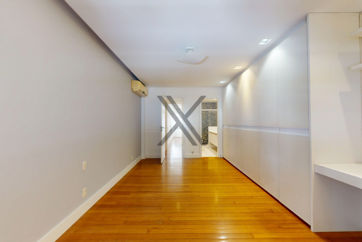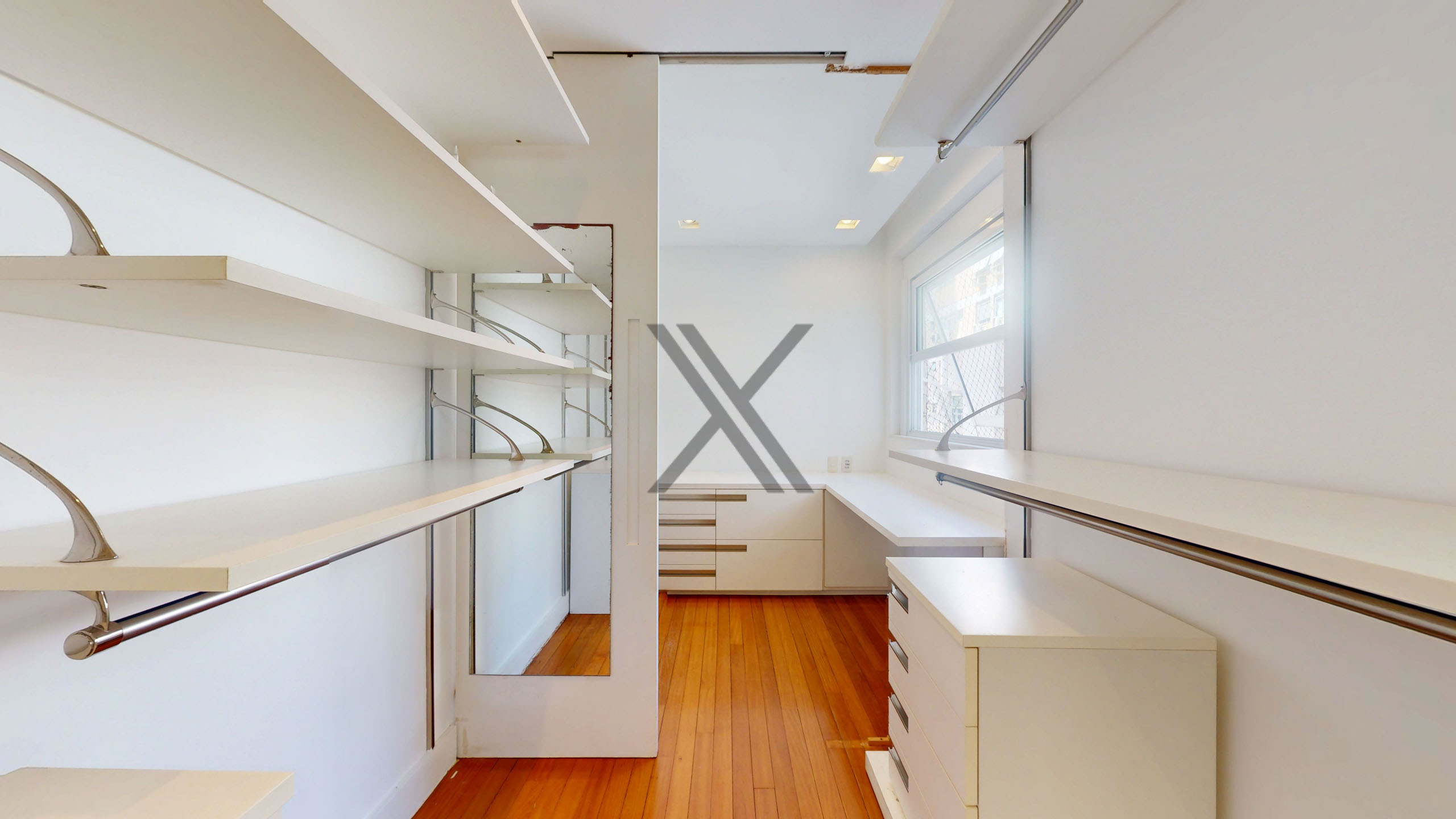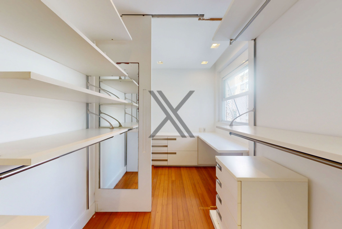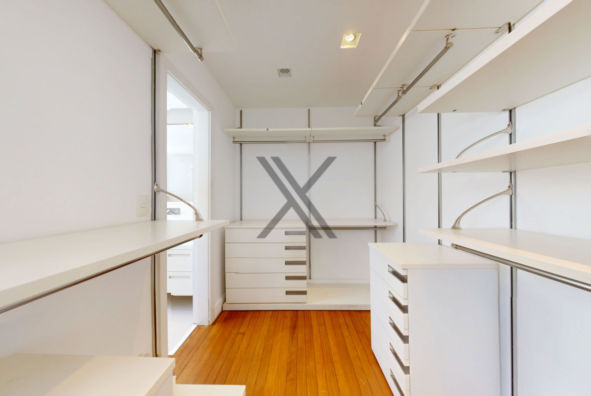 Na parte íntima, são ao todo 4 suítes, todas com um bom tamanho, armários e piso em taco original. A suíte master conta com espaço para closet com grande quantidade de armários, além do banheiro espaçoso.