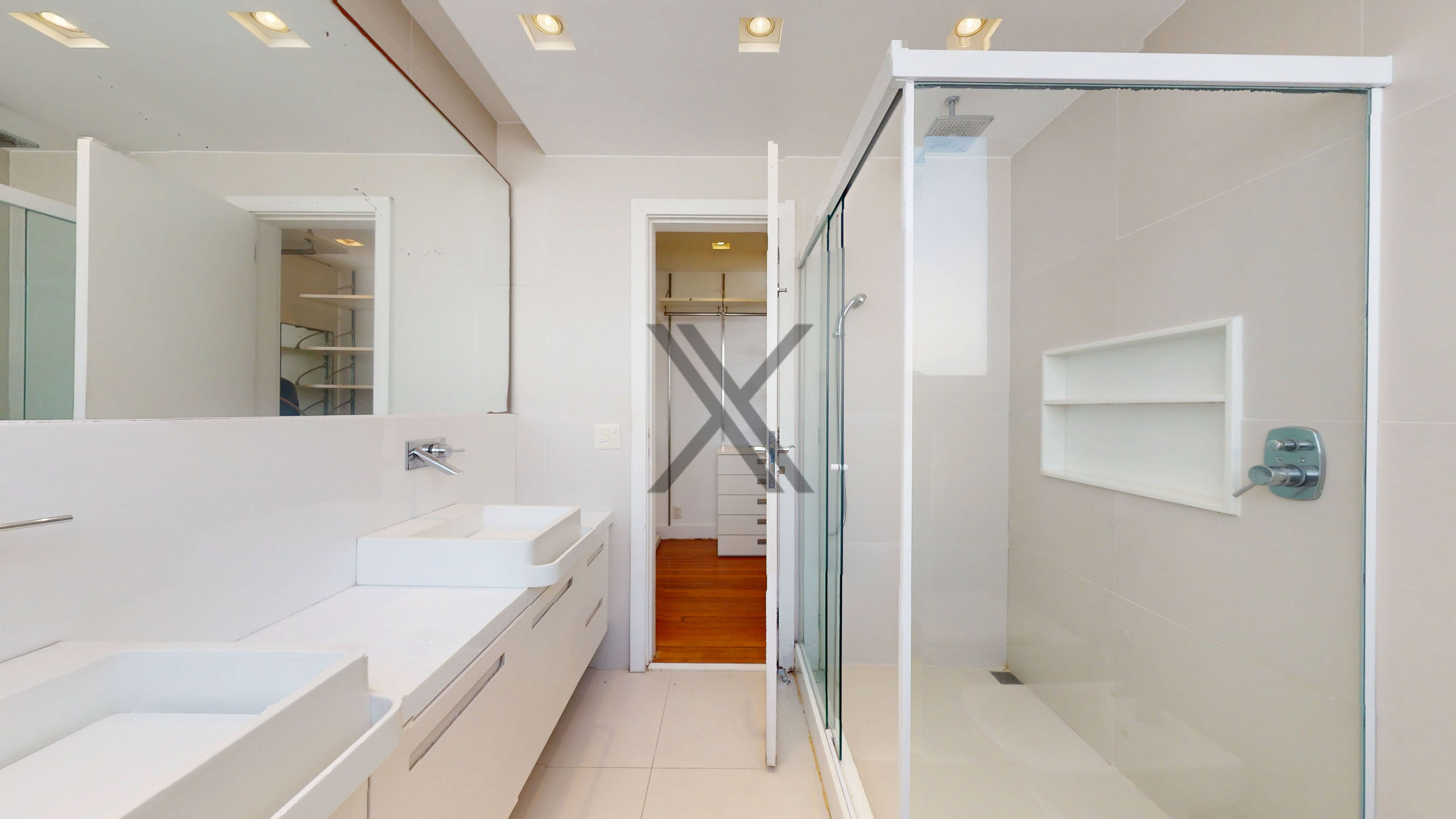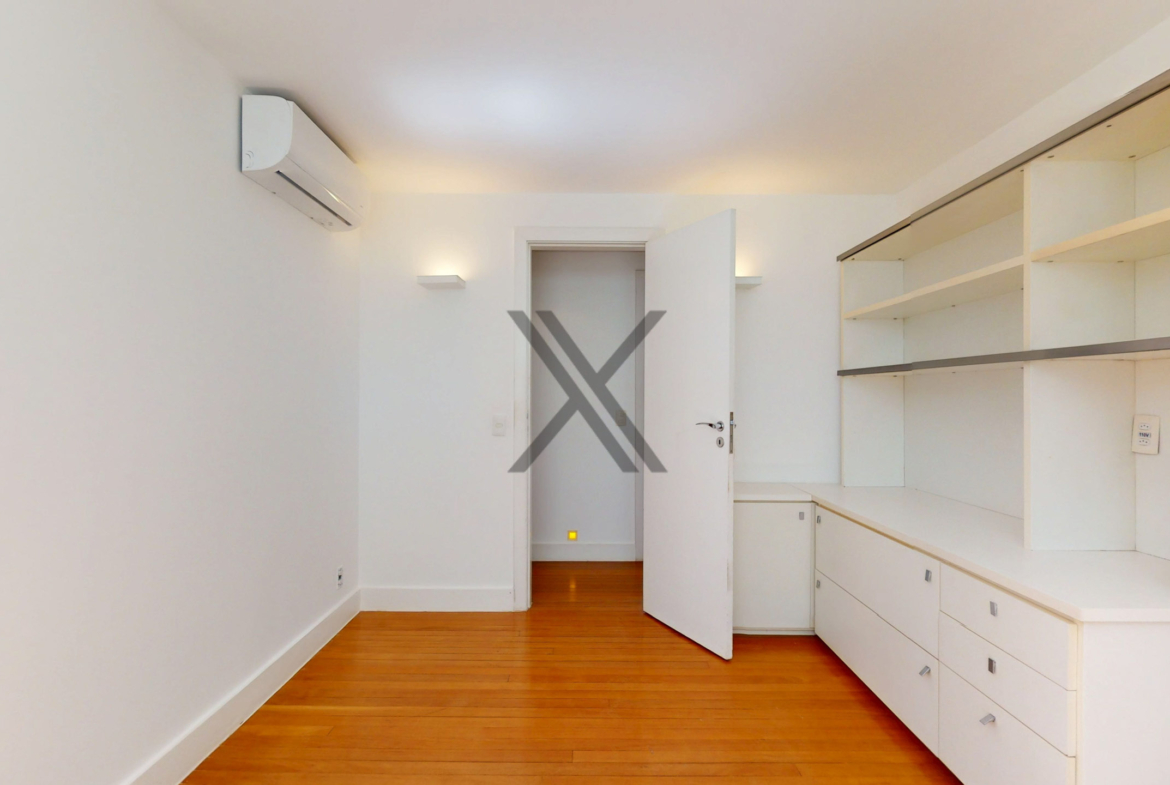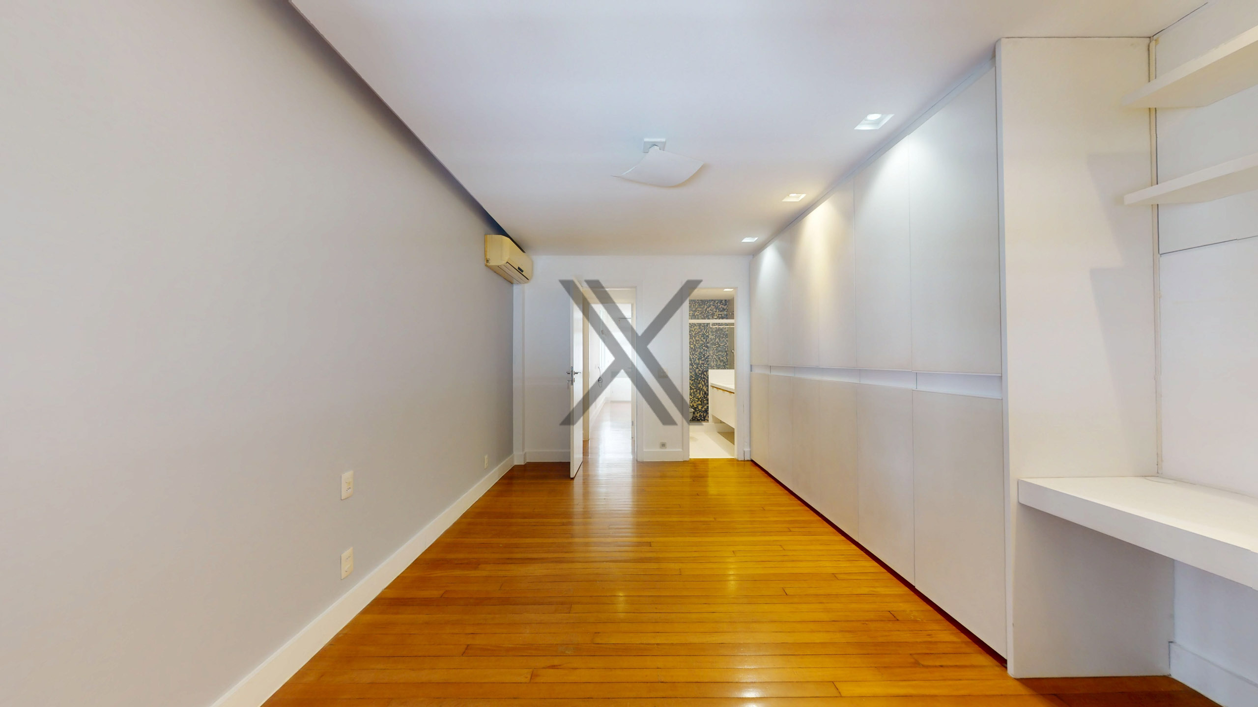 Na parte íntima, são ao todo 4 suítes, todas com um bom tamanho, armários e piso em taco original. A suíte master conta com espaço para closet com grande quantidade de armários, além do banheiro espaçoso.