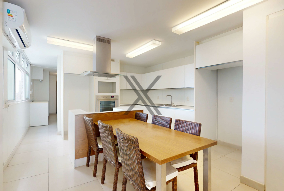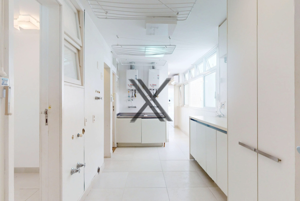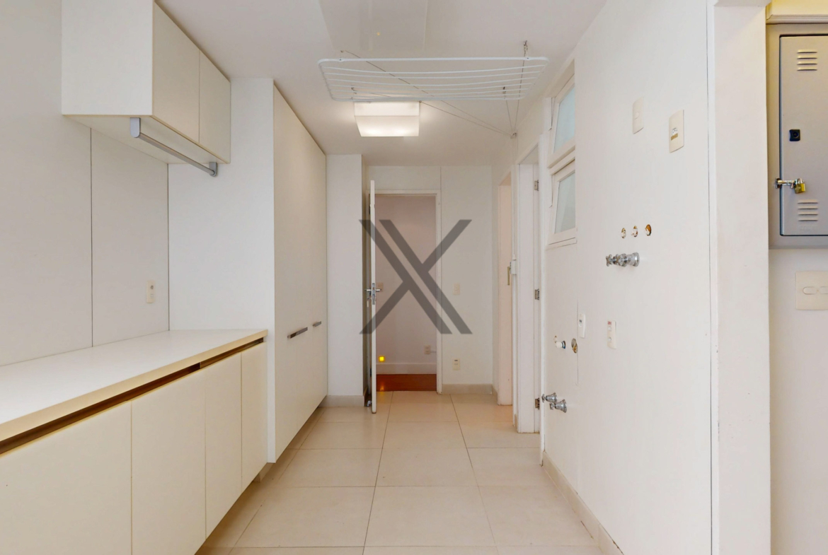 A cozinha possui ótimo espaço de circulação, grande quantidade de armários e bancadas para apoio e organização, além de uma belíssima ilha com área para pequenas refeições. A área de serviço/ lavanderia está separada e conta com duas dependências completas para funcionários.